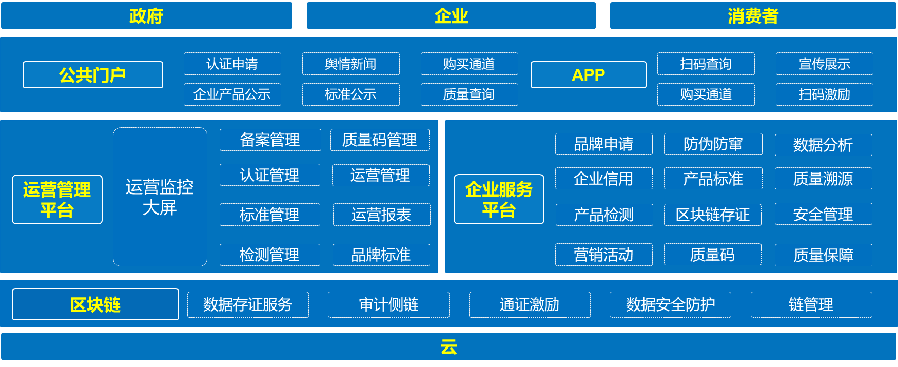 ¡¡¡¡ÇøÓòÆ·ÅÆ¹«¹²·þÎñƽ̨´òÔì¡°122N¡±ÏµÍ³£¬¼´¡°Ò»Á´Á½Æ½Ì¨Á½Í·N·þÎñ¡±¡£Ò»Á´ÎªÇø¿éÁ´Æ½Ì¨£¬»ùÓÚÇø¿éÁ´ÊÖÒÕ¾ÙÐд洢£¬Ê¹ÓÃÇø¿éÁ´ÊÖÒÕÈ·±£Êý¾ÝÇå¾²¡¢²»¿É¸Ä¶¯£»Á½Æ½Ì¨ÎªÔËÓª¹ÜÀíÆ½Ì¨ºÍÆóÒµ·þÎñƽ̨£¬Í¨¹ýÆ·ÅÆÊý×Ö»¯ÈÏÖ¤ÓëÈ«ÉúÃüÖÜÆÚÖÊÁ¿¹ÜÀí£¬Ö§³ÖÇøÓòÆ·ÅÆÆóÒµÊý×Ö»¯ÈÏÖ¤ºÍÆ·ÅÆ²úÆ·¶¯Ì¬ÔËÓª¹ÜÀí¡£Á½Í·Îªweb¶ËÓëÒÆ¶¯¶ËÁ½Àà¶ÔÍâÐû´«ÃÅ»§¡£Æ½Ì¨ÃæÏòÏûºÄÕß¡¢ÆóÒµ¡¢Õþ¸®ÌṩµÄÖÊÁ¿ÅÌÎÊ¡¢´Ü»õ¹ÜÀí¡¢Êý×Ö»¯ÓªÏú¡¢¶¯Ì¬»¯î¿ÏµµÈNÏîÊý×Ö»¯·þÎñ¡£